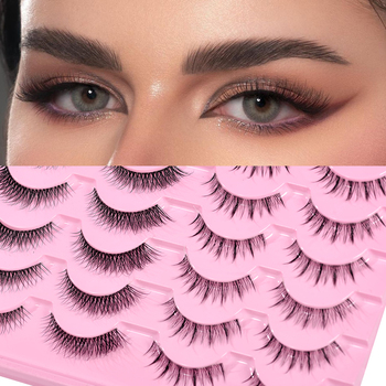 Hecho a mano 3D Fluffy Faux Mink Strip Lashes 10 pares Maquillaje Bandeja de extensión de pestañas postizas Material de cabello sintético